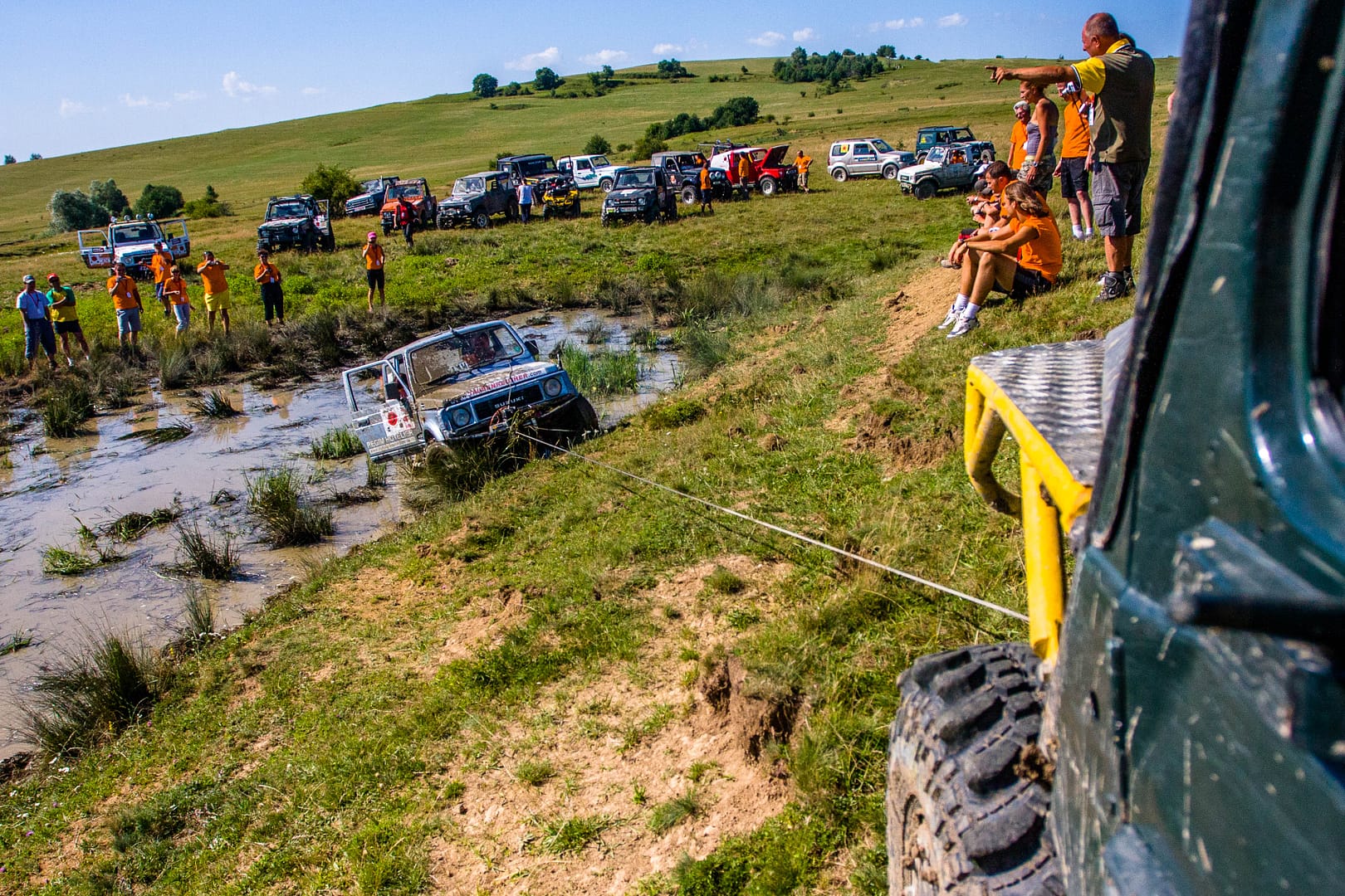 On our way to the trial competition place we got to this huge puddle of mudd, where the most courageous tried their tires and their winches 🙂