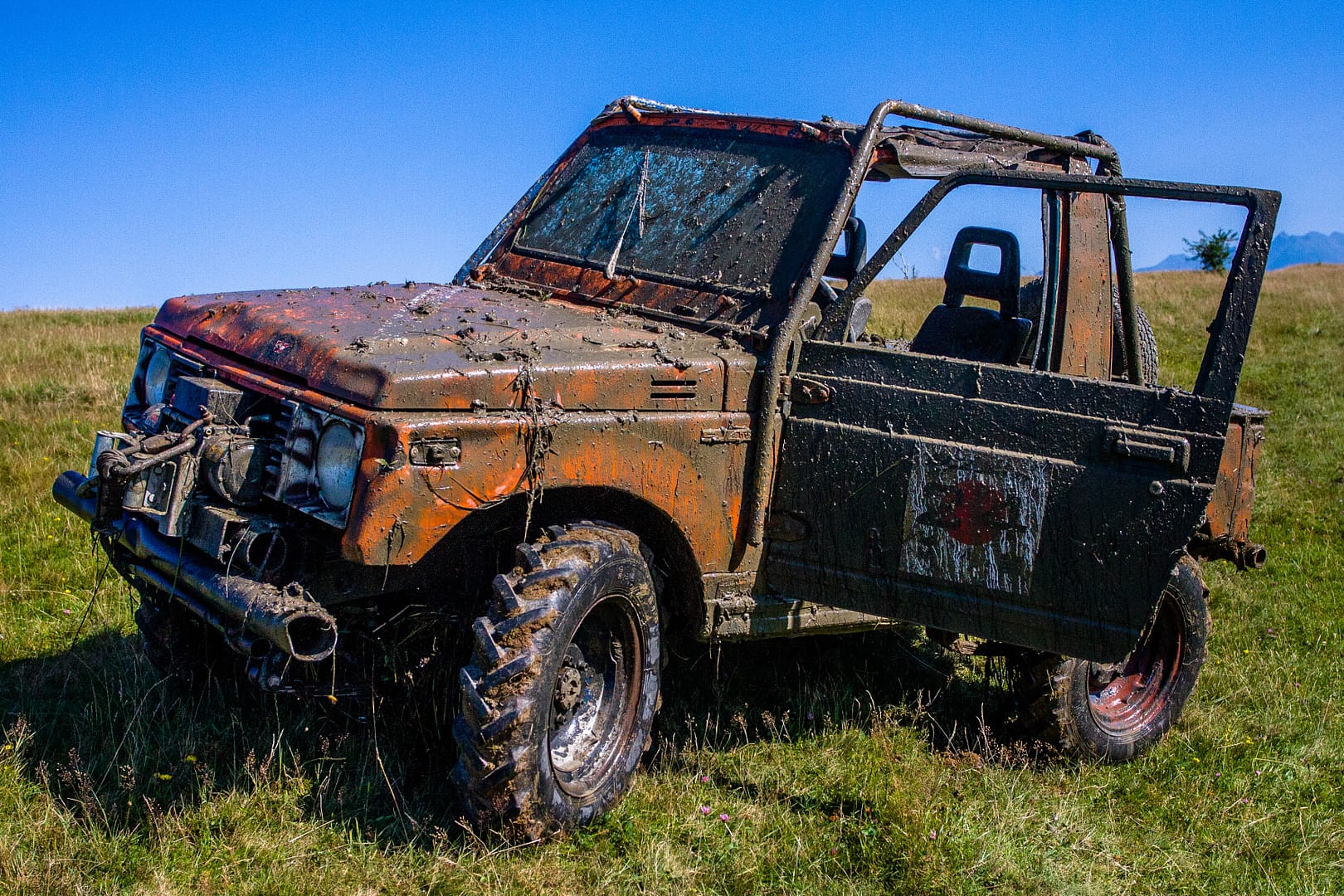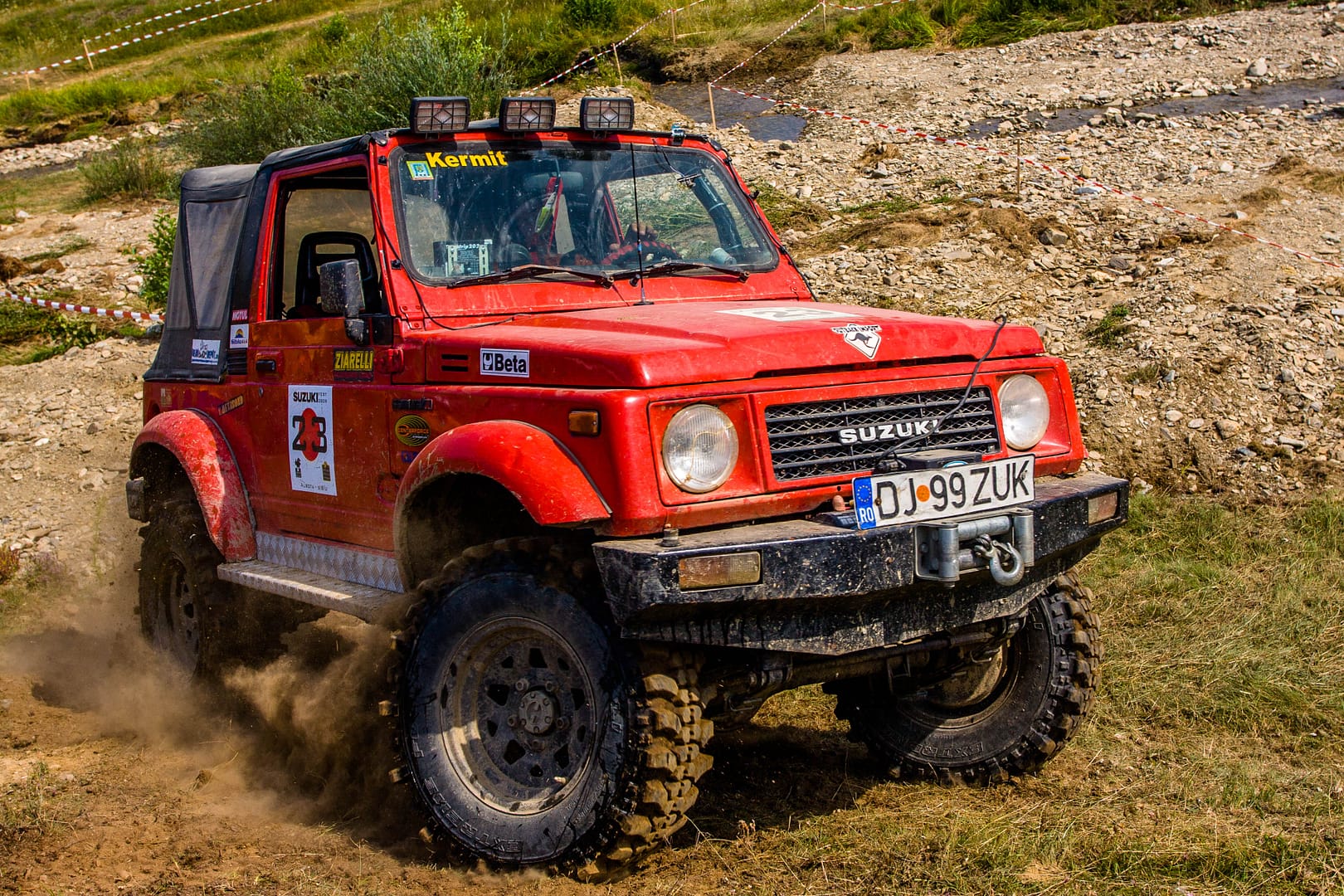 Radu’s Samantha made no exception. He invested a lot of work in a reconditioning project, he got a decent set of MT tires, a winch on the bullbar and some pretty cool painted body accents. This is the Samurai that with Radu’s friendly permission I got to drive for quite a while during the event.