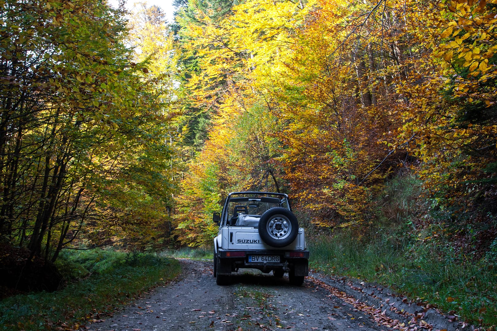 This road (DJ103A) is quite an off-road forest road you wouldn’t expect to qualify for a county road, but it is an official county road connecting Zizin to Dalghiu village. I wouldn’t recommend you to use this as your daily commuting route unless your suspension is unbreakable, but I’d definitely invite you to try it, especially for the views and the incredible forest colors during autumn.